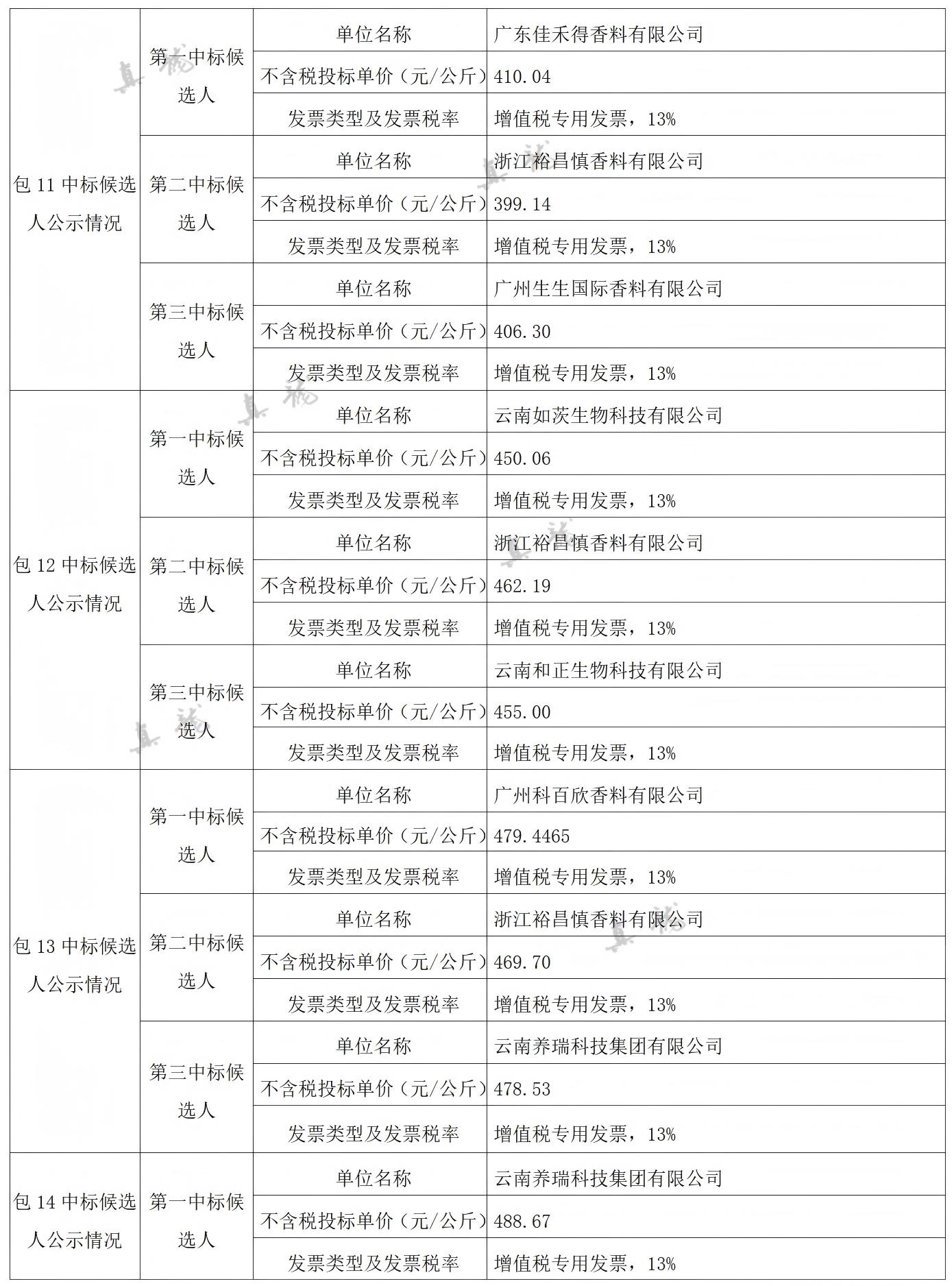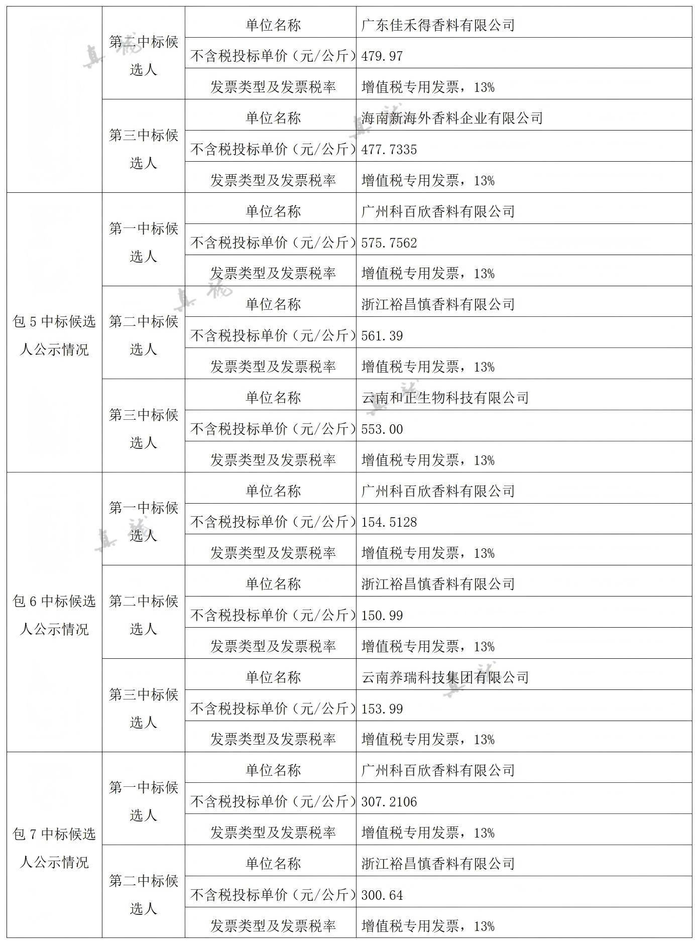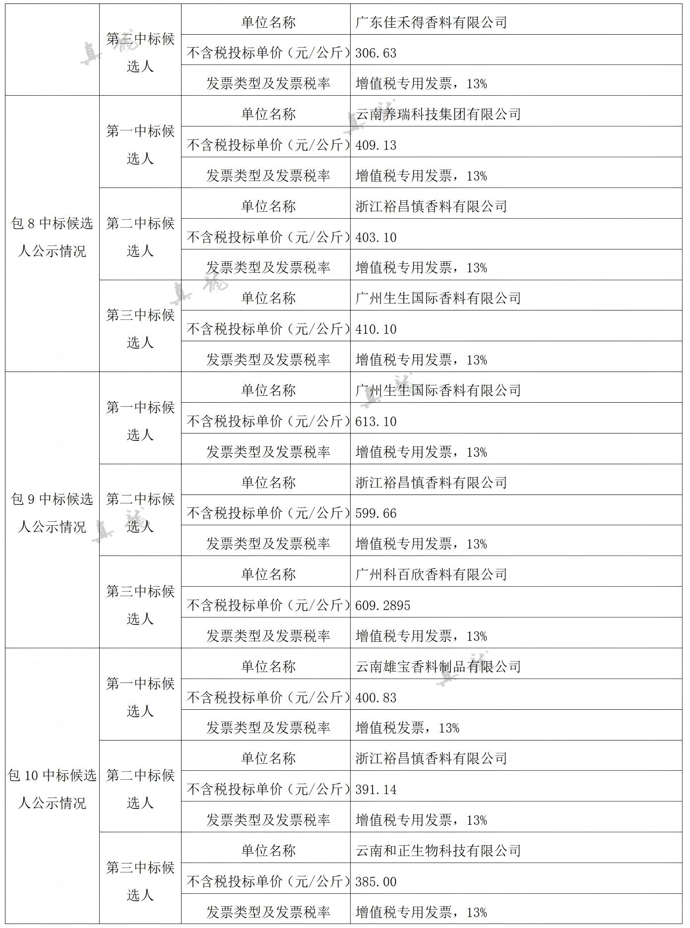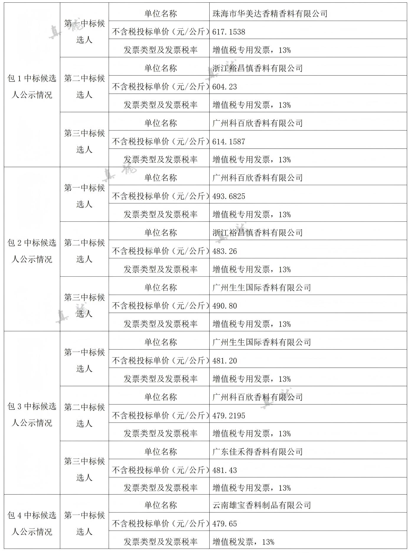 廣西中煙工業(yè)有限責(zé)任公司2026-2028年自主品牌香精香料采購之復(fù)合體采購第一批(項(xiàng)目編號:B202501BA2001767947560)中標(biāo)候選人公示