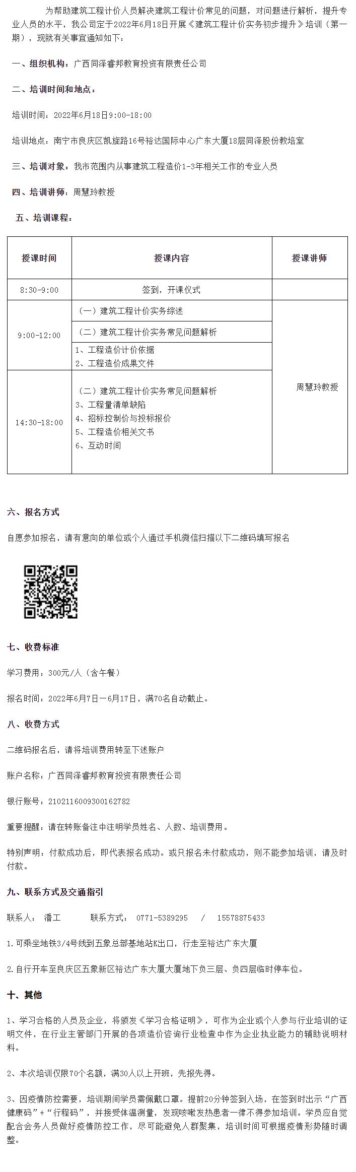 關(guān)于舉辦《建筑工程計價實務(wù)初步提升》培訓(xùn)班的通知